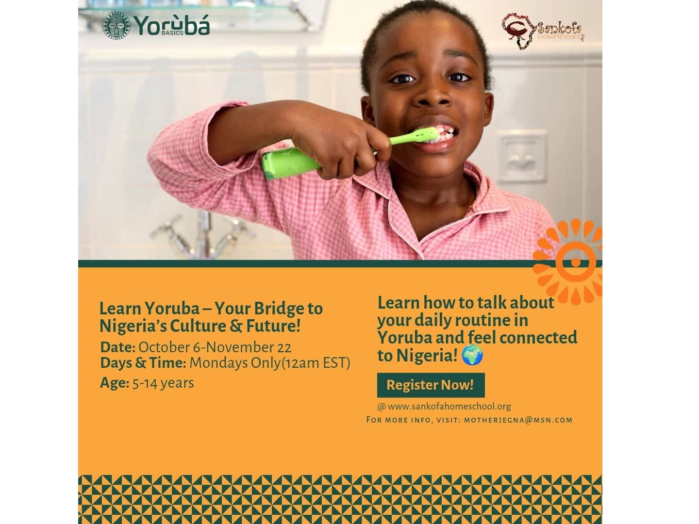 Yorùbá Language is spoken by the Yorùbá people who are located in the Western part of Nigeria. Yorùbá is becoming a fast widely acceptable Language as a result of its role in the popular Afro beat and the most interesting thing about Yoruba is the richness of their culture. The theme for this session is ''Daily routine''. Under this theme, we will have fun filled practical on day-to-day activities and also explore Yoruba culture through story telling. This theme will help students in constructing sentences because they will be learning useful verbs and phrases in an interesting way. The theme will be taught using practical, poems, games and virtual field trip.
